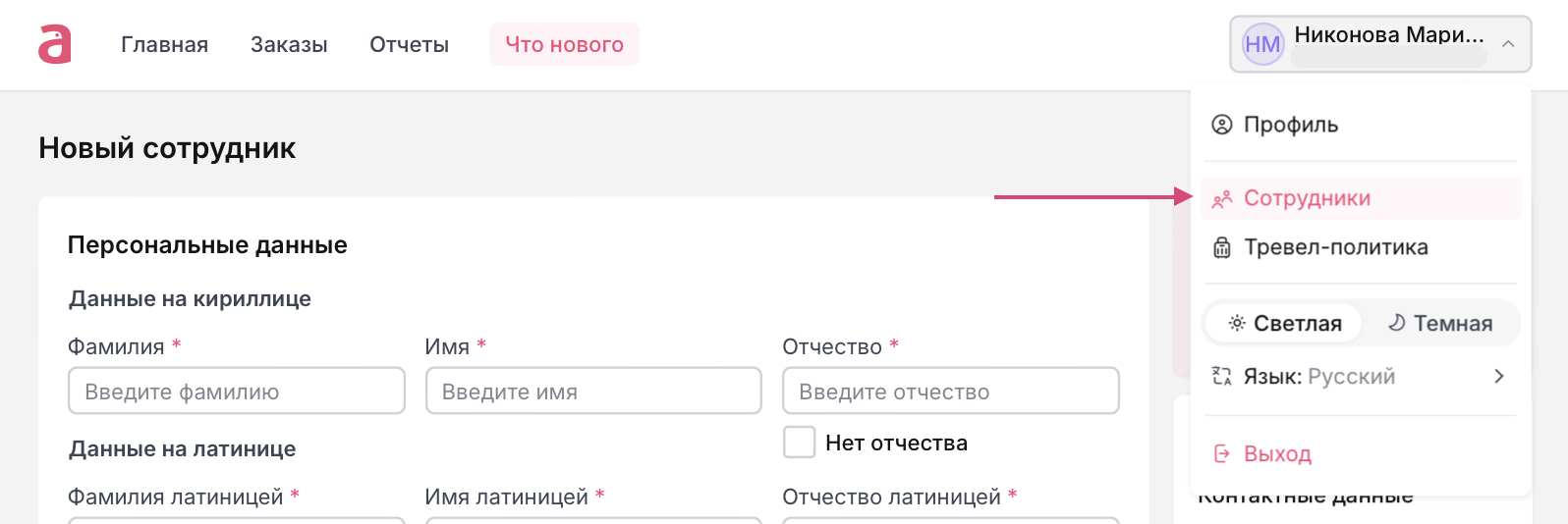 Важно! При отсутствии созданных тревел-политик добавить их в профиль к сотруднику будет невозможно. Кнопка будет недоступна.