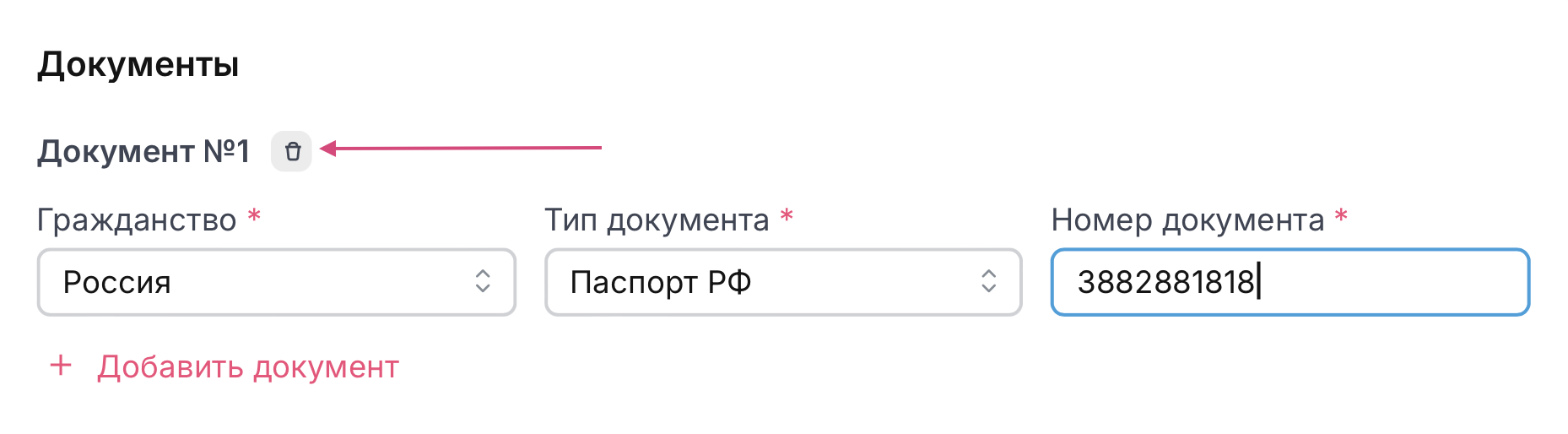При необходимости удалите документ, нажав на иконку корзины.