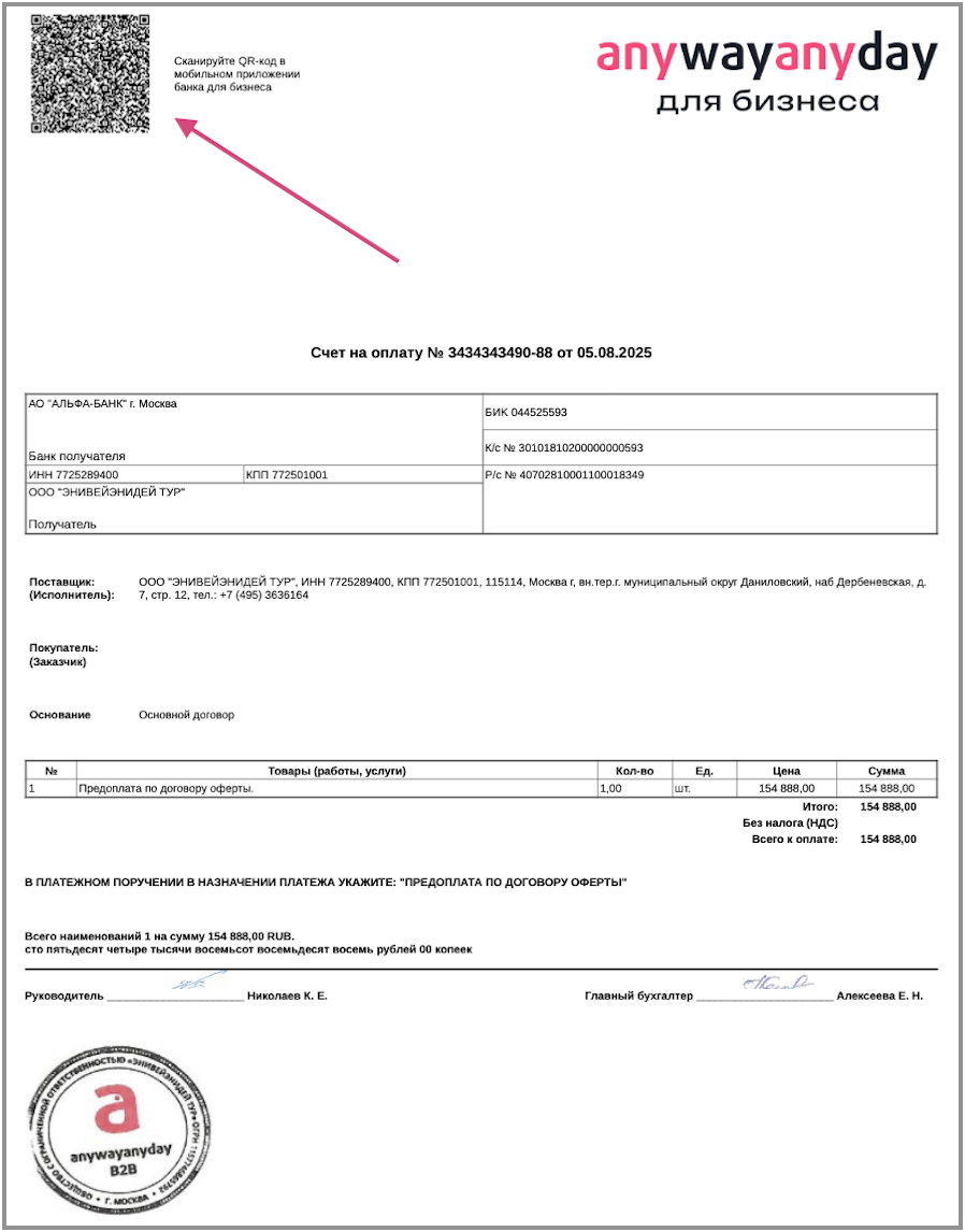 Отсканируйте QR-код в мобильном приложении банка для бизнеса, и вам не придется вводить реквизиты вручную.