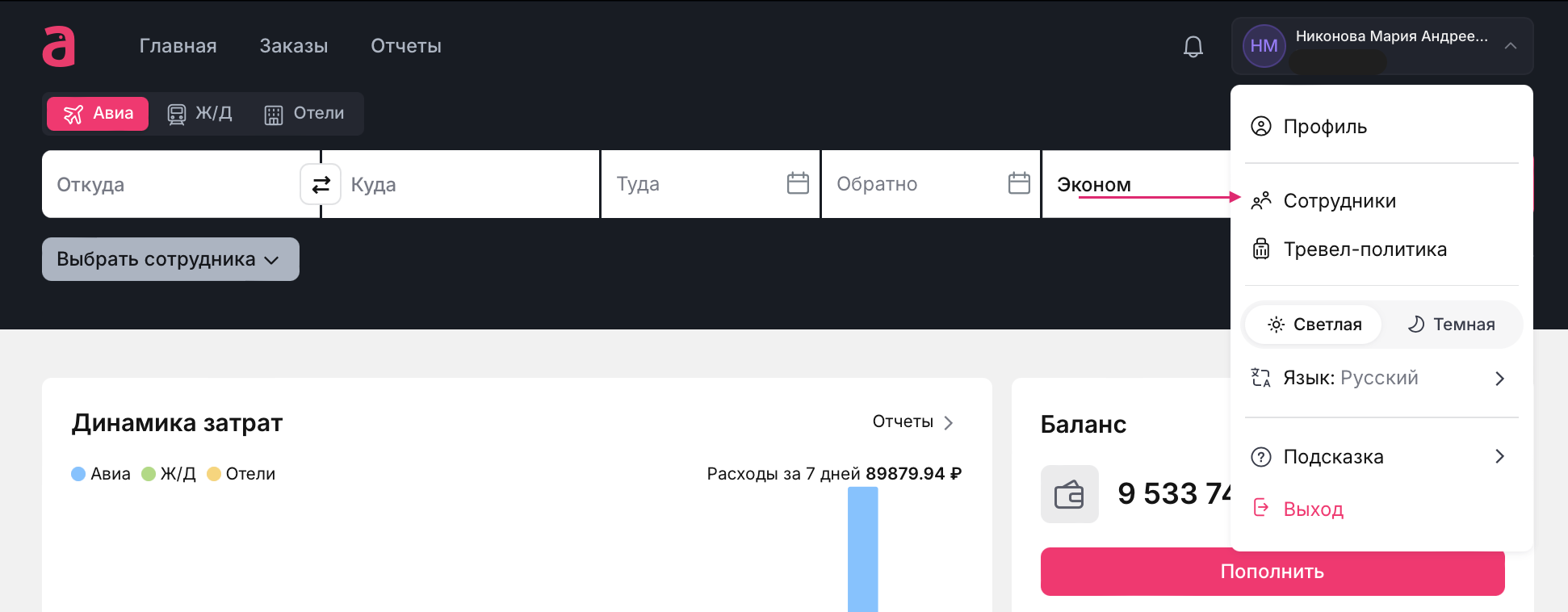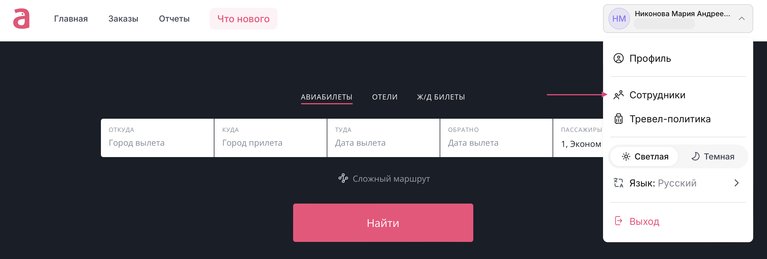 Перейдите в меню с настройками компании и выберите раздел «Сотрудники».