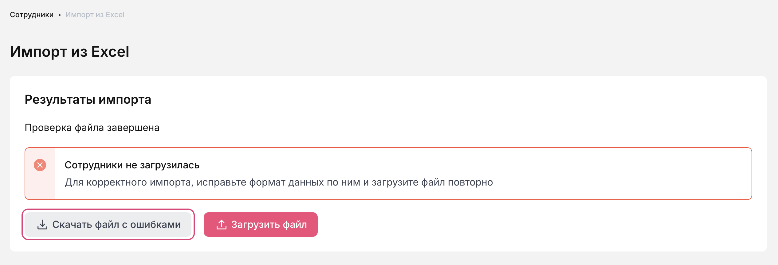 Если загрузка прошла с ошибками, используйте файл с их описанием для исправления. После этого повторно загрузите скорректированный файл, нажав кнопку «Загрузить файл».