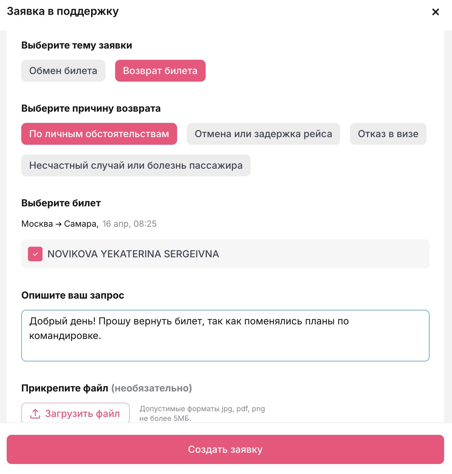 После подачи заявки откроется чат с оператором.