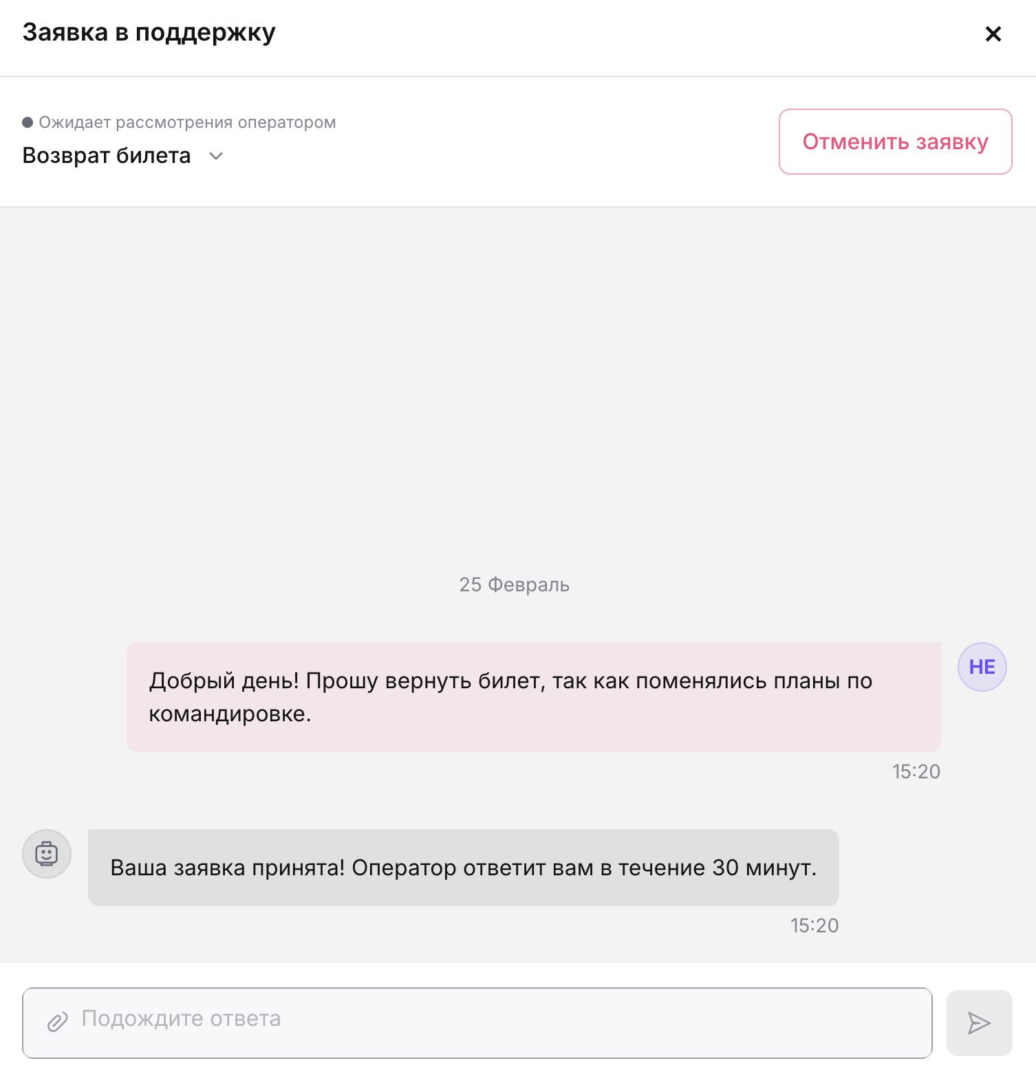 Ожидайте ответа оператора