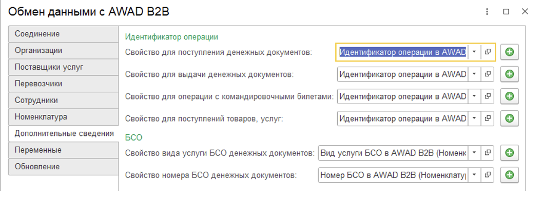Перевозчик нужен только, если это операция с командировочным билетом. Если БСО, то данную вкладку можно не заполнять. Включает в себя настройки: