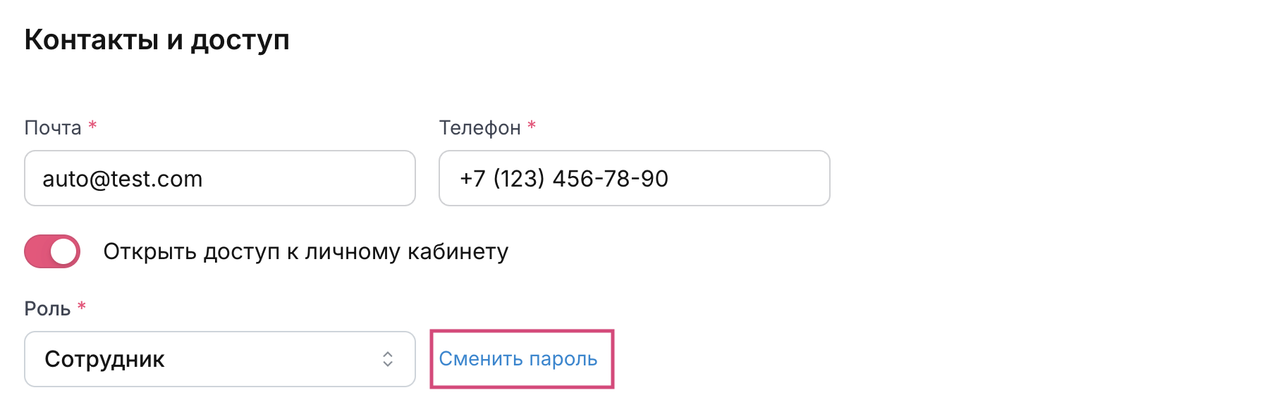 После успешного сохранения сотруднику придет письмо с логином и новым паролем на почту, указанную в его профиле.