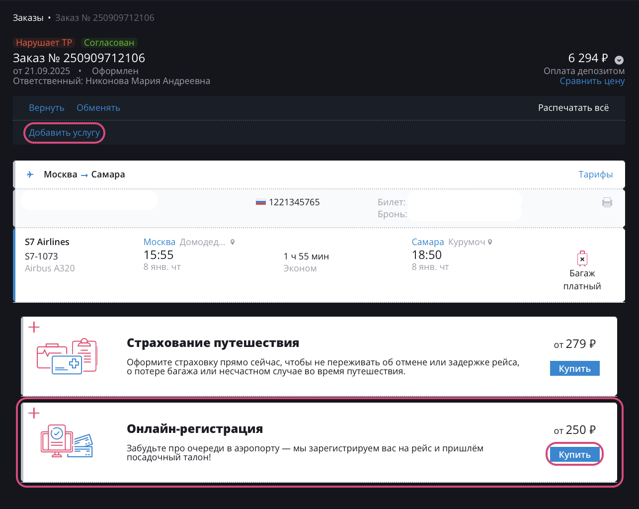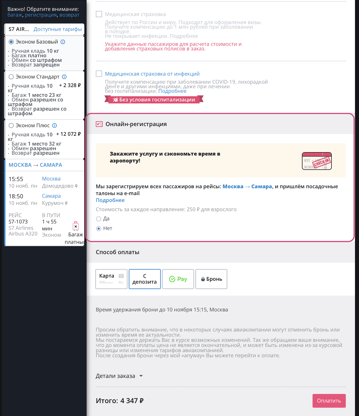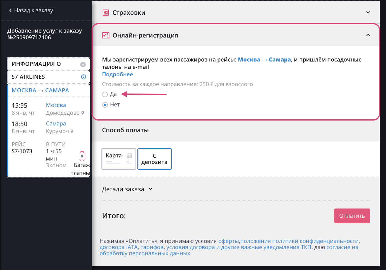 Как оформить услугу онлайн-регистрация к вашему заказу?